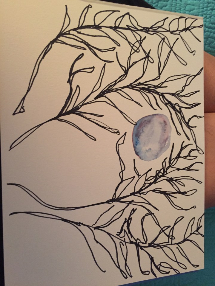 12821569_10154046650713707_6410119451165863673_n7:15am- I’m doing okay this morning.  Today the pain in my chest is a little less.  It may be the pep talk with a good friend this morning.  I’ve learned I need to talk about my problems.  I also need to write my problems down.  I know Julia Cameron’s book the Artist’s Way has helped me.    Maybe I need to go have an artist date.  I could go to the park and draw trees.  Chloe needs to get out as well.  I don’t know how many times I can say it writing helps!